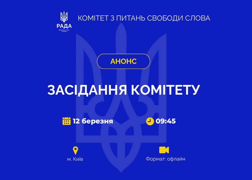 12 березня відбудеться чергове засідання Комітету з питань свободи слова.